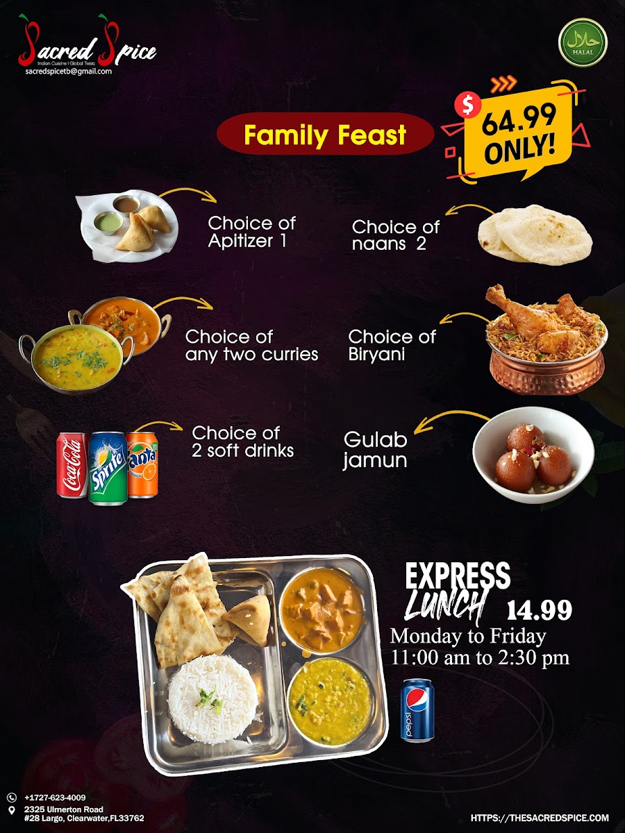 CHOICE OF APITIZER 1. CHOICE OF NAANS 2 CHOICE OF ANY 2 CURRIES Choice of 2 soft drinks CHOICE OF Chicken biryani